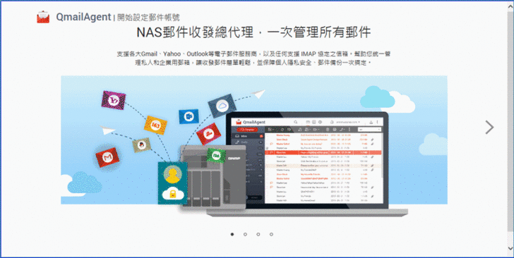 【▼】現代人多個e-mail已是常態,像小編Gmail、Yahoo和微軟Outlook都有在用,有的是公司對外,有的是屬於個人的q郵件,若能一次管理所有郵件就不用到各個電子郵件入口一一登入帳密才能收發信件。這個心聲QNAP聽見了,推出的QmailAgent App能將您的NAS變身為郵件收發總代理,不怕被盜帳密,保障個人隱私安全,幫助您集中郵件帳號,收信管理、郵件備份輕鬆完成。