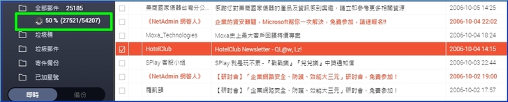 【▼】郵件和附件的下載皆會以背景任務執行。在您登入帳號後,系統會下載郵件伺服器上的資料並進行同步。初次同步時小編就有五萬多封信,看來需要一點時間來完成同步作業。