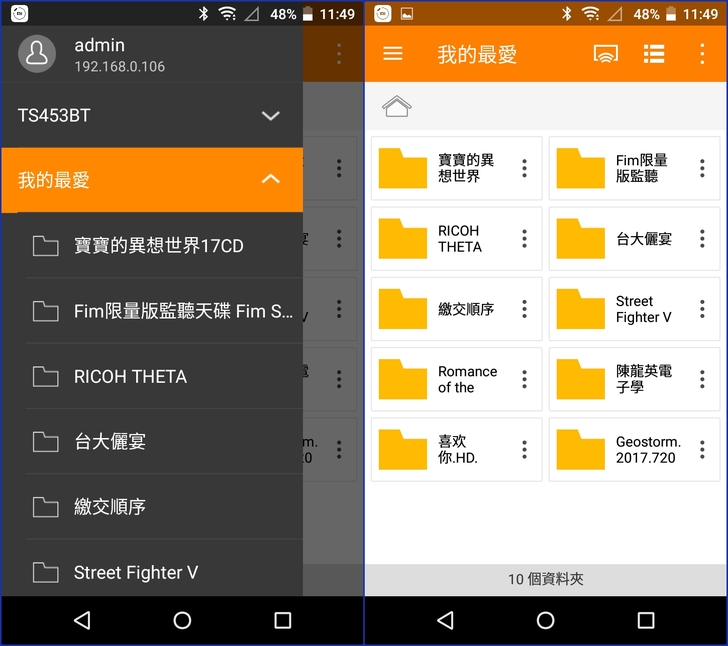 【▼】以Qfile App查看被FileStation加入到【我的最愛】的資料夾。