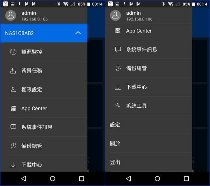 【▼】一次可管理多台QNAP NAS的Qmanager,其主選單的部分主要有資源監控、背景任務、權限設定、App Center、系統事件訊息、備份總管、下載中心以及系統工具。