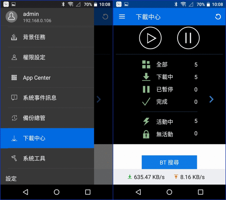 【▼】輕鬆檢視 Download Station下載中心及備份情況,並適時遠端中止或繼續下載及備份任務。而且還提供了BT種子的搜尋引擎,讓好東西不遺漏,不過也要注意智慧財產權的問題。