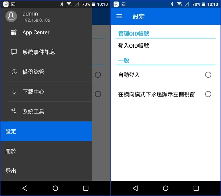 【▼】最後在 Qmanager App設定中則是能設定QID帳號以及是否自動登入或顯示方式的調整。