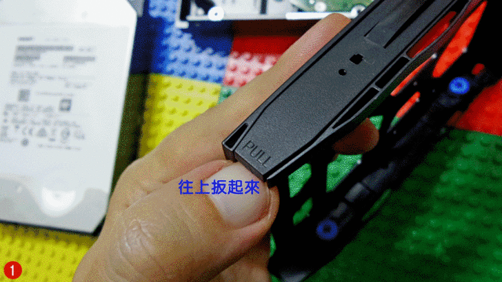 【▼】前面有提供硬碟的順序是依左至右,硬碟盤下方有設計 1-4的標示,放入後會有喀的一聲,確保硬碟的SATA介面有連接好。