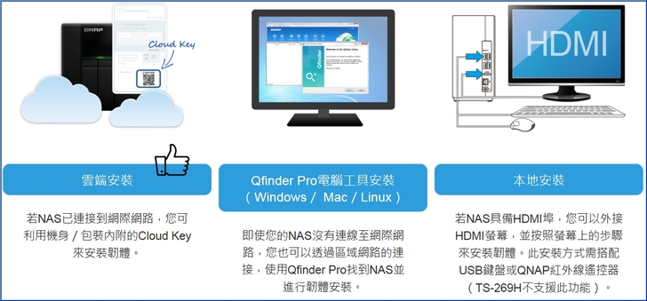【▼】QNAP全系列產品要將韌體安裝進NAS中,原廠提供三種方式:這邊小編以第一種來示範