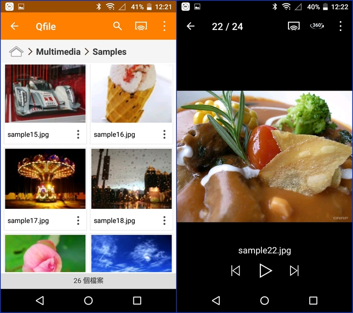 【▼】假設是圖片檔案的話,Qfile App會顯示預覽畫面,點選後更可全螢幕播放。