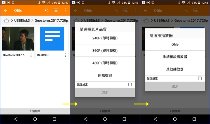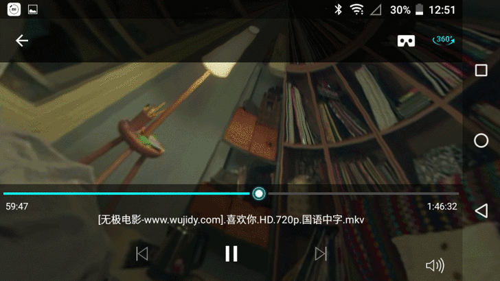 【▼】小編以Qfile播放器來播放影片,影片一樣可以切換成360度環境播放,可惜沒辦法外掛字幕,若要外掛字幕的話,可安裝QNAP另一套Video Station App,輸入 .srt 字幕檔,立即線上欣賞。
