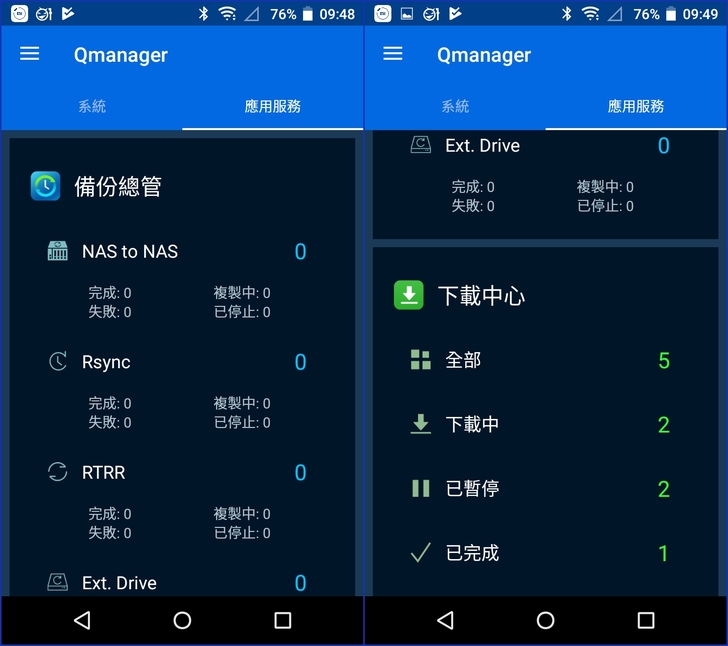 【▼】而在主畫面的應用服務頁面中,可以查詢資料備份的狀態,也能查詢 Download Station目前的工作進度。
