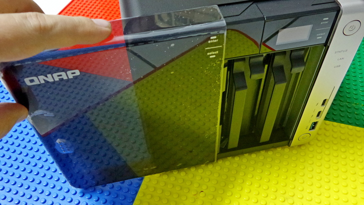 【▼】TS-453BT3在放置硬碟的插槽外有加裝外蓋,除了鏡面美觀之外,還兼有防塵功效,更棒的是不影響觸控面板的操作。
