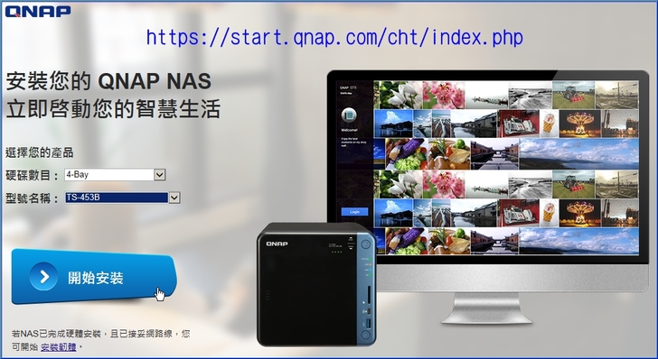 【▼】硬體連接好電源線與網路線後,接著就是韌體安裝的步驟了,首先連接網路到 http://start.qnap.com/cht/index.php 選擇相對應的NAS型號。