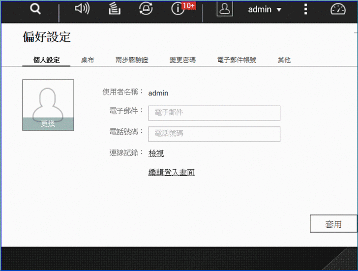 【▼】在偏好設定中,可以設定個人大頭貼、桌布、兩步驟驗證密碼、電子郵件與自動登出等選項。