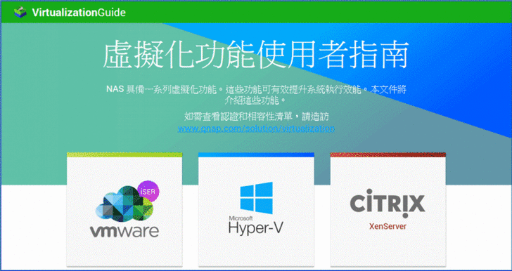 【▼】對於虛擬化也是QNAP近期主推的強項,透過Virtualization Station的介紹,可知QNAP NAS 為 VMware® vSphere™、 Microsoft® Hyper-V® 與 Citrix® XenServer™ 等知名虛擬應用,提供一套高效能、高穩定及高經濟效益的網路儲存方案與鏈結方式。