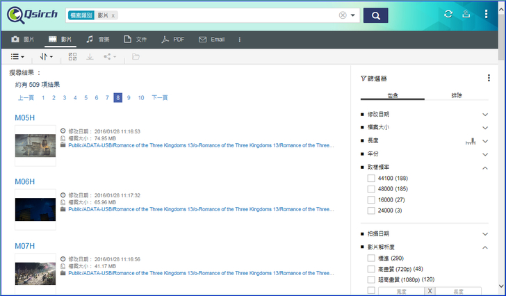 【▼】Qsirch 資料搜索支援高達 6000 種以上的檔案類型搜尋,以及30種以上篩選條件。包含:檔案名稱、後設資料 (檔名、作者、EXIF、IPTC、XMP 等)、內容、修改日期及資料路徑。