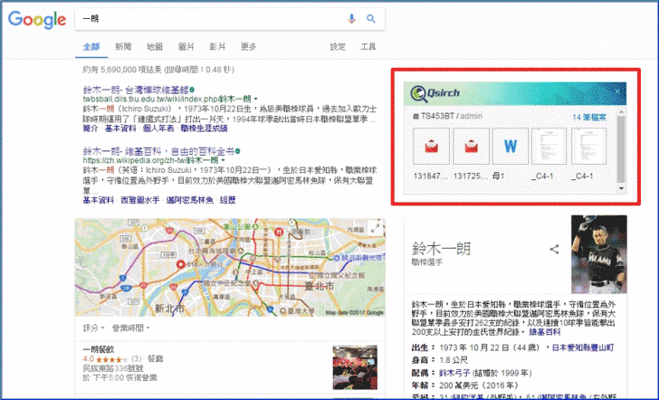 【▼】所以在瀏覽器打關鍵字時,也會同步顯示Qsirch在您NAS中找到的關鍵字檔案。加上Qsirch 開放 API 文件供第三方應用程式與系統整合使用,在瀏覽器上輸入點擊連結即可瀏覽文件。