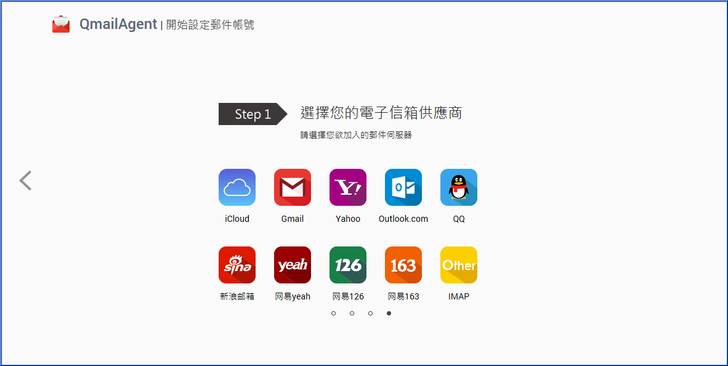 【▼】首先選擇您的電子信箱服務供應商,大都為網路上的免費信箱,常見的有iCloud、Gmail、Yahoo、Outlook等,若您有自己專屬的SMTP或POP3,是可以選擇other IMAP的。