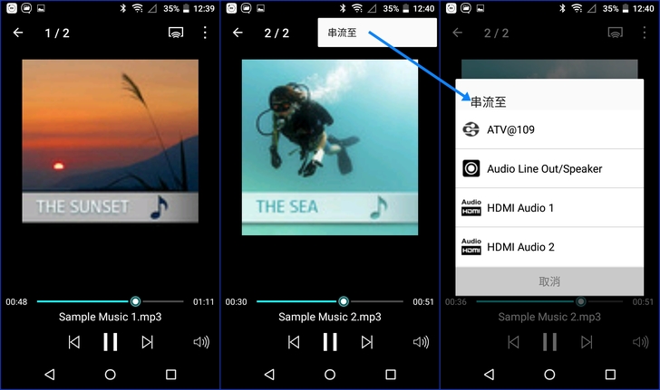 【▼】對於音樂格式的檔案,除了可以直接點擊播放外,亦可串流道不同的裝置上,若行動裝置有安裝Music Station App的話更可以為每一首歌輸入歌詞。當您聆聽歌曲珍藏時,您可以盡情同步歌唱!