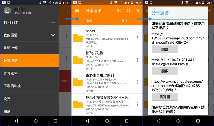 3.開始使用:透過桌機,筆電或是行動裝置來連線,登入帳密開始使用TS-453BT3的各項功能。