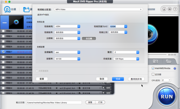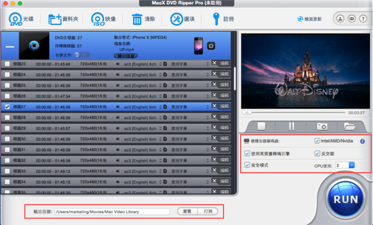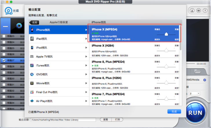 導入資料後,MacX DVD Ripper Pro會自動偵測正確的DVD影片檔選項,按正確順序轉檔影音內容。