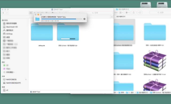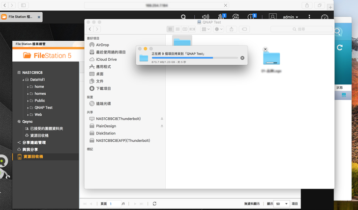 接上Thunderbolt線材後,在Finder視窗可以看到出現專屬的通道,傳輸檔案的速度令人驚艷,非常直覺的操作!!另外還能下載手機app:Qfile,操作介面十分直覺,進入設定時也相當容易,只要確認上述設定無誤,就能一鍵暢通的完成手機app設定。