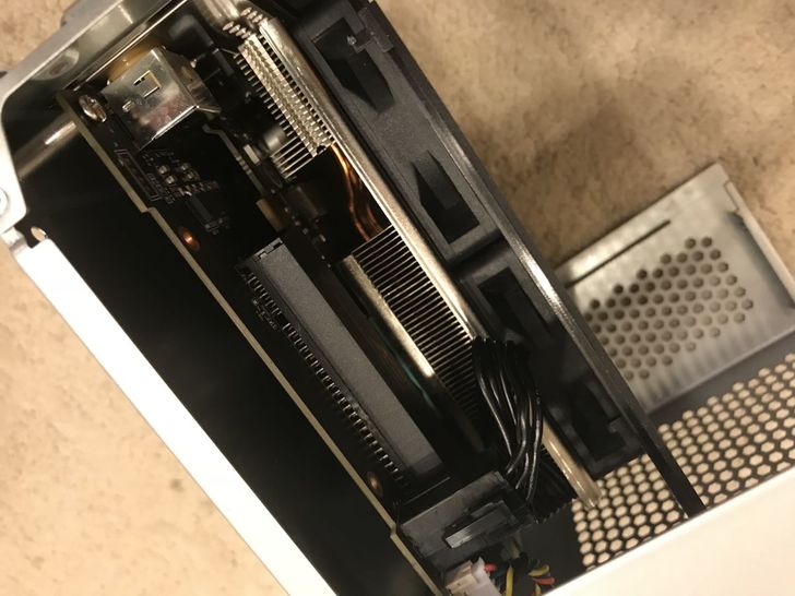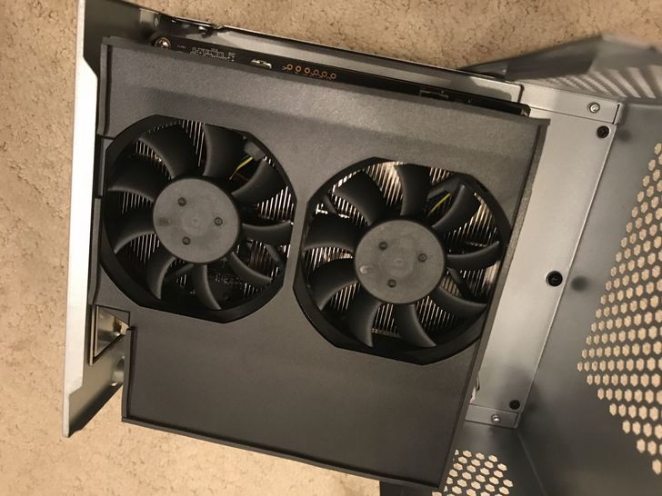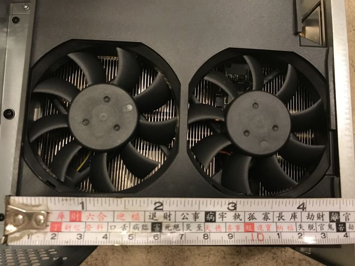 只要拆下盒子後面的兩顆螺絲就可以把外殼打開,可看到這張1060是雙風扇版