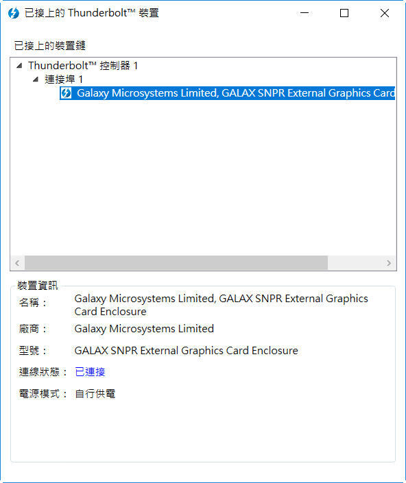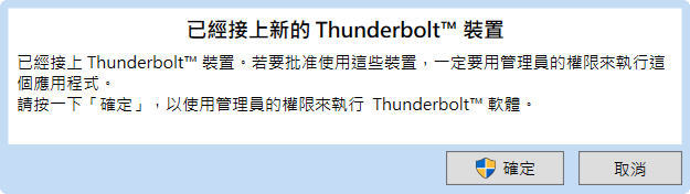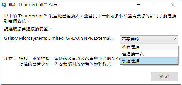 接上後就會抓到Thunderbolt外接裝置,選永遠連接即可