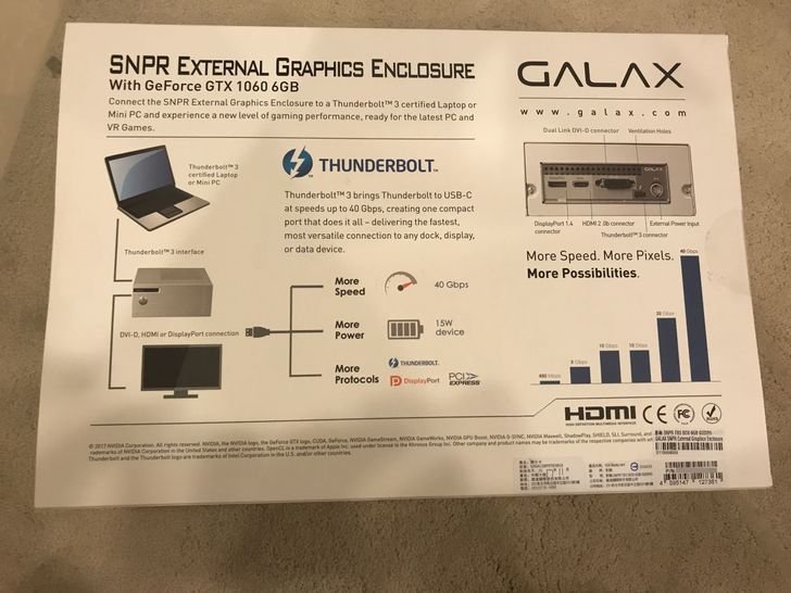為了解決筆電內顯不夠力的問題,看來外接顯卡是有搞頭,不過之前的方案好像都沒很完善?現在流行的外接顯示盒(USB 3.1 TYPE-C或Thunderbolt 3)好像有搞頭,小弟有幸幫人入手就來玩一下並分享