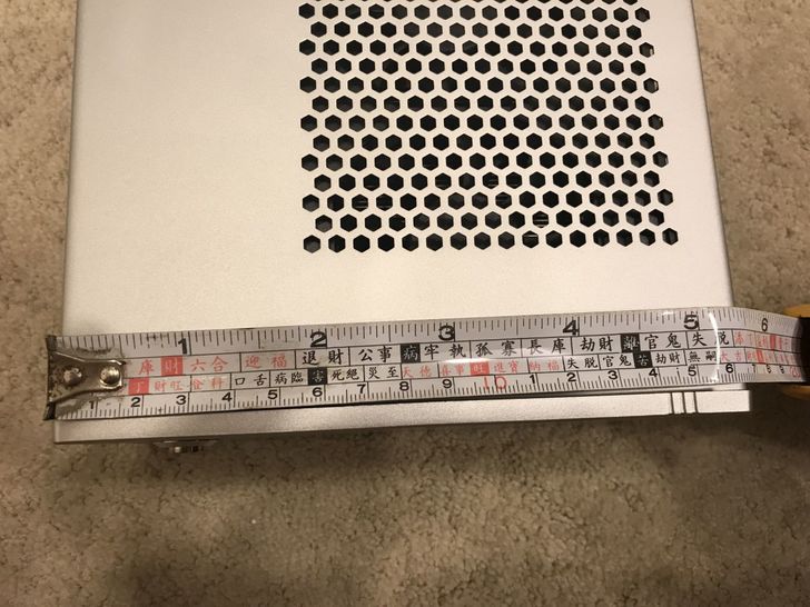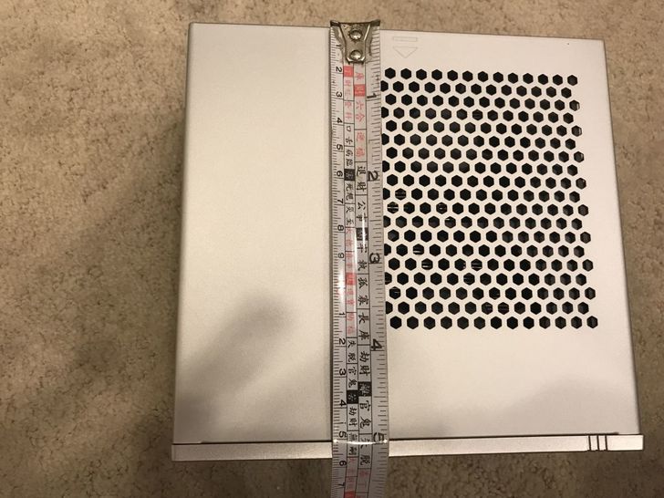 量了一下,顯卡大約是14公分,盒子長寬大約為16.3X15.7公分左右