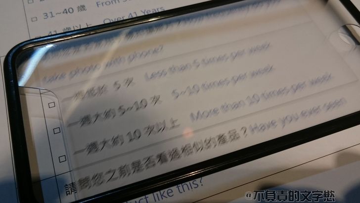 會發現字有點斜紋,但其實不明顯(此3D技術採lenticular,柱狀透鏡技術),