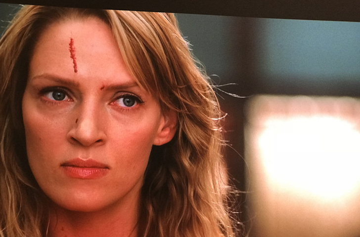 一樣是追殺比爾片段,烏瑪舒曼臉上的血跡、頭髮紋理層次、背景的光暈..這台3LCD投影機表現的很好!!