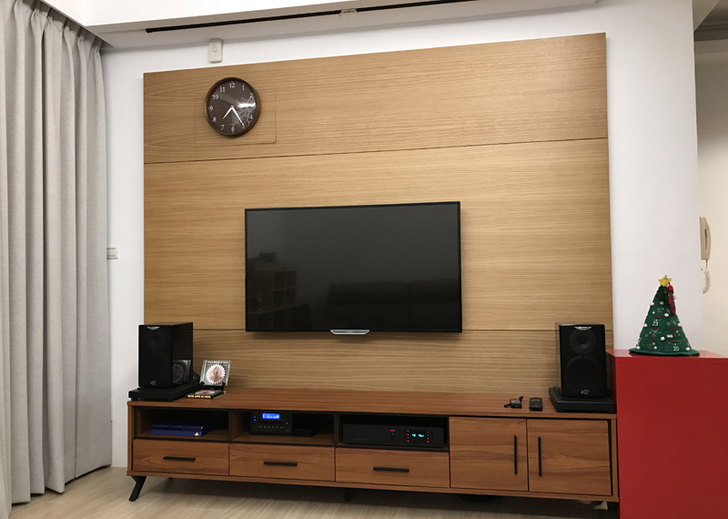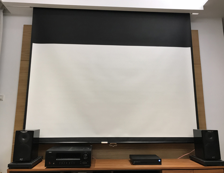我家重新裝潢時就先安裝投影布幕,本想裝100",但考量電視牆面與標準的投影機要3M投射距離都不夠,加上買90"的布幕便宜很多,所以就買90吋 ^^"