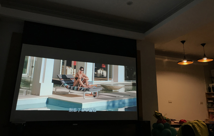 實際試用產品可以發現,產品所投射出來的亮度著實很高,而且不用擔心環境燈源過亮而無法享受大畫面看影片的細節與樂趣。我是使用億利的90”投影布幕,在莫約2.5米的距離就能輕鬆投出90”的畫面。