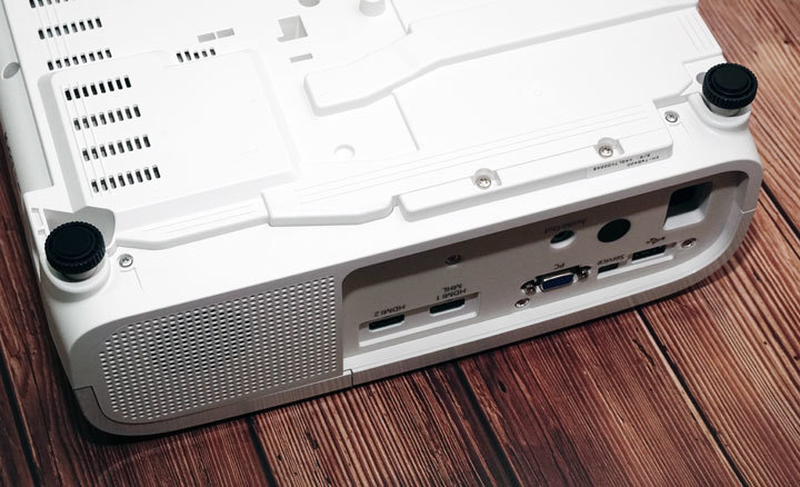 圖:EH-TW5400 機身底部後側有兩個腳座,可透過旋轉來微調機身左右側高低,若是置放在非水平面的桌面時,就能很方便地進行調整囉!