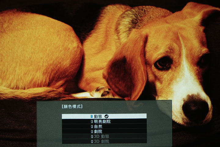圖:在 EH-TW5400 的顏色模式中,提供了2D 與 3D 訊源共六組模式,上圖為「動態」模式。