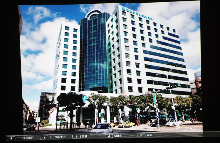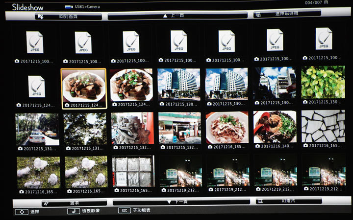 圖:直接選取要瀏覽的照片,就可以透過投影出來的大畫面來欣賞囉!另外「USB 播放功能」也提供了幻燈片播放的功能,可自動切換資料夾中的照片來觀看。