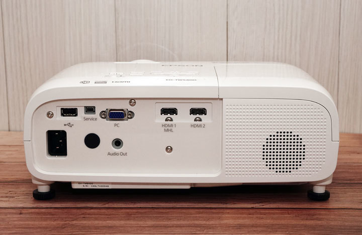 圖:EH-TW5400 內建了雙 HDMI 埠,其中一組支援 MHL 功能,可連結智慧型裝置進行投影;另外機身也內建有一組電腦用的 VGA 埠,以及一組可連結隨身碟直接瀏覽儲存影像的 USB埠。