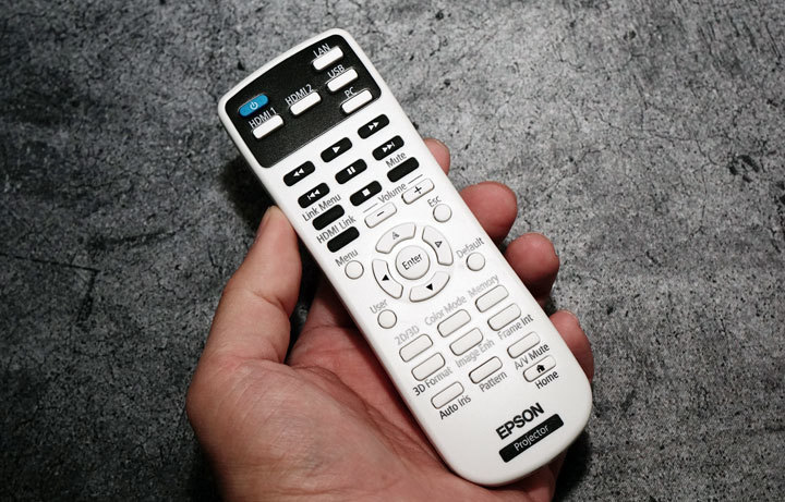 圖:EH-TW5400 的腦控器尺寸十分小巧,功能按鍵也很豐富,另外仔細觀察可以看出 Epson 十分貼心地以色塊與不同顏色的按鈕來搭配,方便我們快速找到不同類別的功能鍵。