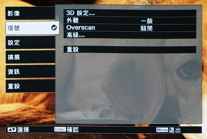 圖:在「信號」的功能分頁中,可選擇 3D設定與其他關於訊號源的設定項目。