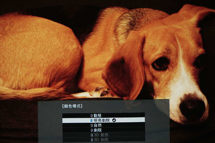 EH-TW5400 強調了色彩呈現的豐富度,同時也提供了多樣化的色彩模式,方便使用者在觀看不同類型的訊源,或是在不同環境下可切換為不同的顯示模式,以達到最佳的影像顯示效果。我們可以從設定選單的「顏色模式」來切換不同的影像調性,包括動態、明亮劇院、自然與劇院四種 2D 顯示的模式,另外 3D 顯示內容也有 3D 動態與3D 劇院兩種,方便我們依照需求來調整。