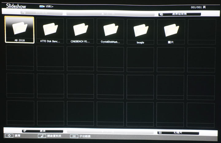 圖:USB 播放功能的操作界面,可以透過遙控器來選取要瀏覽的資料夾。