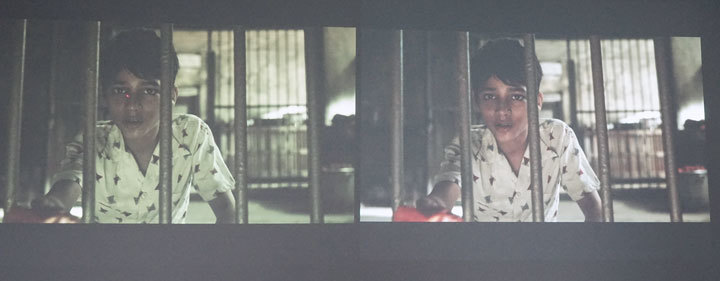 圖:另外在這個單一光源的場景,也可發現到圖左的DLP 投影機在人臉暗部的細節已經相當薄弱,而圖右的 3LCD 投影機則保有暗部的細節變化,膚色表現也不像 DLP 投影機一樣已經變成有點「臉色發青」的效果了!