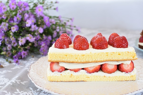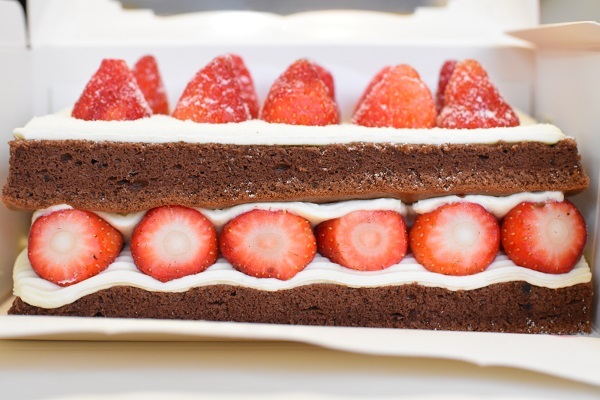 因為蛋糕久放後蛋糕體不旦乾澀、草莓相對也會不新鮮