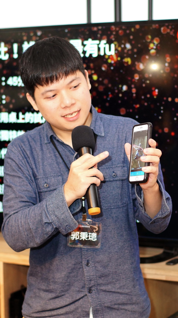 這位是特亞科技Theia Tech的主講人,講話蠻風趣的,我個人覺得他有一點點像黃國倫,他手上拿的正是本次體驗會的主角—threal 3D 拍照手機殼。