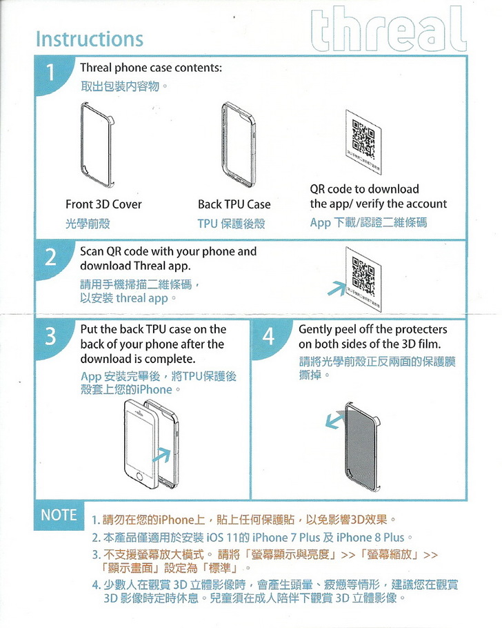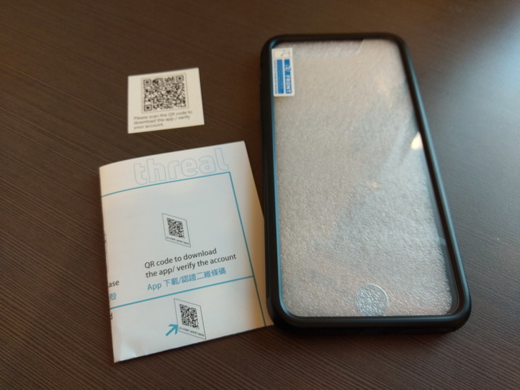 總共只有三樣東西,含有光學膜的手機殼,說明書與一張有QR Code的小紙片