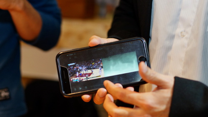 執行長從手機中弄出了一段開發中畫面,這是籃球比賽中的畫面,而且已經是轉成3D的畫面了,雖然籃球比賽是否需要3D效果,可以再討論,但是值得注意的是右方那些灰色深淺不一的畫面,正是特亞科技Theia Tech科技AI伺服器運作的效果,不需要人力,光靠電腦可以將電視畫面中各物體的形體做捕捉,賦予不同深淺光影顏色作為3D影像運算的依據,如果連籃球比賽這種動作速度快的影片都可以克服,那麼比較慢的一般劇情片自然是沒問題,我個人在想如果看那種古代的戰爭片,千軍萬馬奔騰的3D效果,應該會很驚人吧。