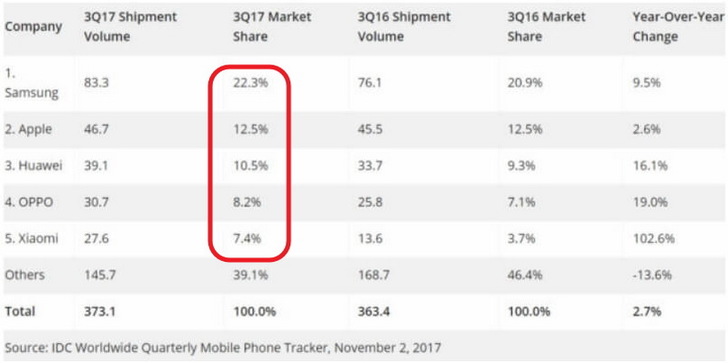 慘的是對我們台灣廠商相對容易開發的中國市場,世界第一的三星在中國的佔有率居然只有2%,表示如果依照IDC的資料下去開發保護殼,中國市場根本吃不到!