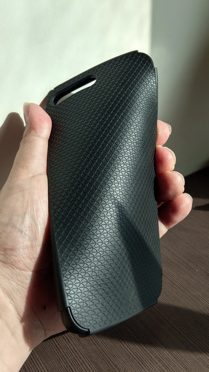 手機殼的後面有咬花,讓你拿起來不容易滑手