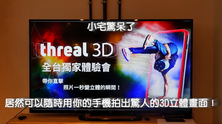 其實在會場中,他們用手機播放3D電影的片段,利用threal 3D 拍照手機殼播放,不用帶特殊眼鏡就真的有3D的效果,據工作人員表示,他們的3D 技術演算法處理速度達 30 FPS,所以3D電影看起來不會Lag,但我必須老實說,因為手機銀幕不大,視覺效果還不夠震撼,如果是用Ipad之類的播放,效果會更佳,可是真的有3D感!!證明他們不是空口說白話,主講人表示今年2月就會開放3D錄影,觀看3D電影的功能了。那麼快啊,不錯喔。