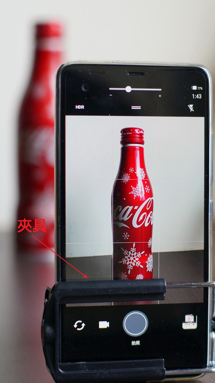 如果覺得這樣不好看,也可以參考自拍手機桿的夾具,開發出大家都可以使用的輕便夾具來固定光學膜片。