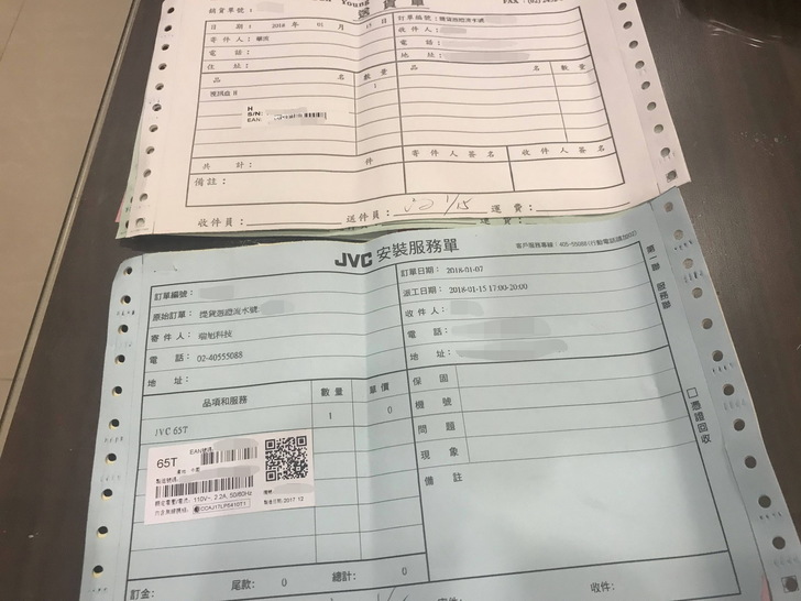 今年感覺比較快,上次55T等了兩個多星期,這次等了8天且因為比較忙,所以感覺沒等幾天就送貨到府了,JVC 65吋4K電視送來啦!