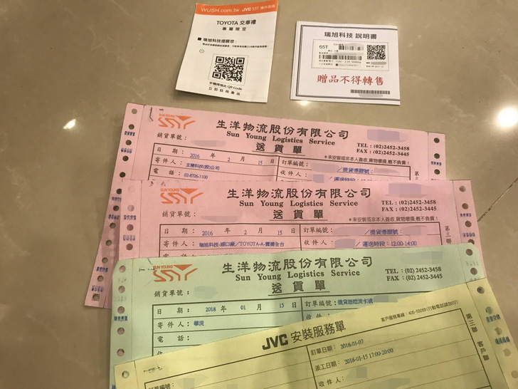 簽單一共兩張,也沒說什麼,應該和之前一樣,一張是電視本體一張是tuner的簽收單