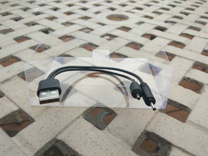 ▲特殊型的USB雙頭充電線。可見充電介面非常見手機Micro B型,須妥善保管,可能較不易購買。